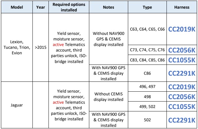 This kit is required to connect the Climate FieldView™ Drive in CLAAS combine with NAV900 GPS & CEMIS display.